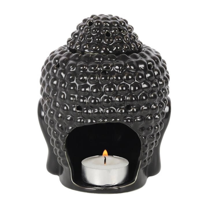 Create a sense of calm and quiet reflection with this matte black Buddha head oil burner.