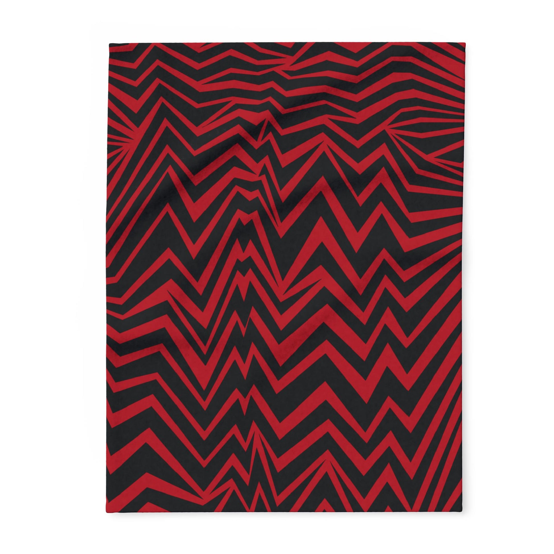 Wrap yourself in bold sophistication with this lightweight blanket, featuring a striking black-on-red chevron design that exudes mystery and elegance. Available in three sizes, its seamless thread color blends effortlessly with the artwork for a flawless, refined finish. At just 0.1" (0.2cm) thick, this blanket is perfect for layering on your bed, draping over your couch, or adding a dramatic touch to your favorite armchair.