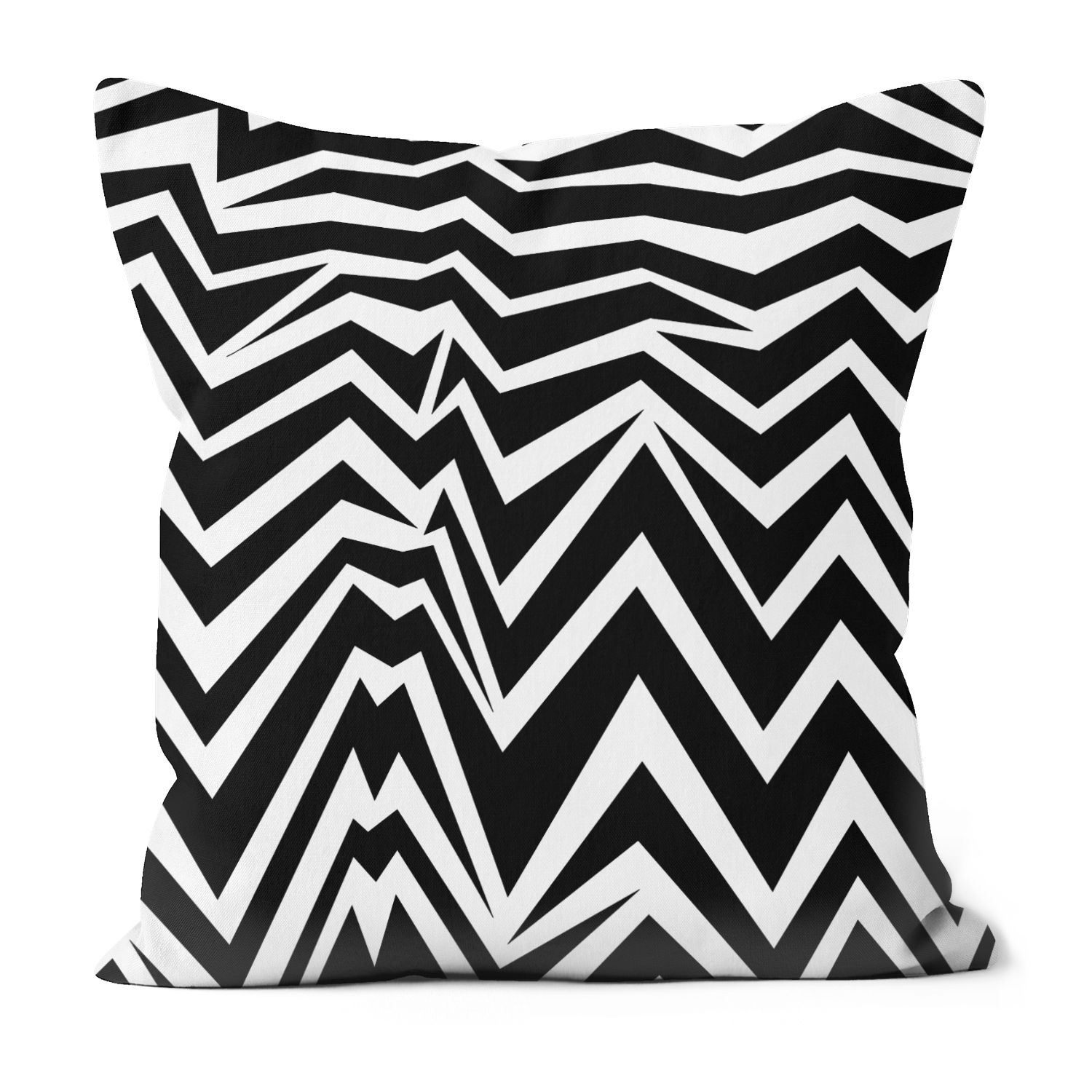 Gothic Black and White Zigzag Faux Suede Cushion – Bold, Modern Statement Pillow for Edgy Décor