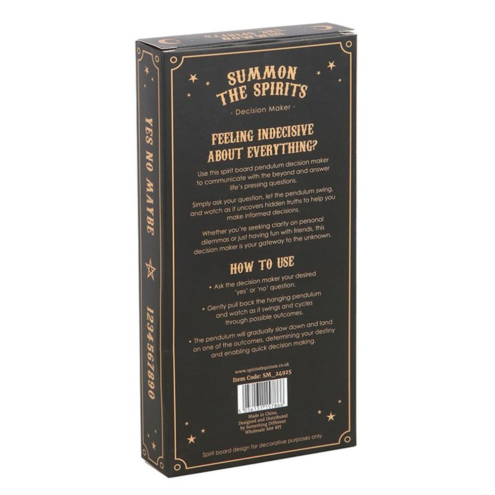 With a mystical talking board design, this metal decision maker features a gold-tone spherical pendulum that magically selects one of six responses. Simply ask your desired 'yes' or 'no' question and watch as the pendulum cycles through the possible outcomes and lands on your destiny. Perfect in size for keeping on desktops and side tables for quick decision-making.